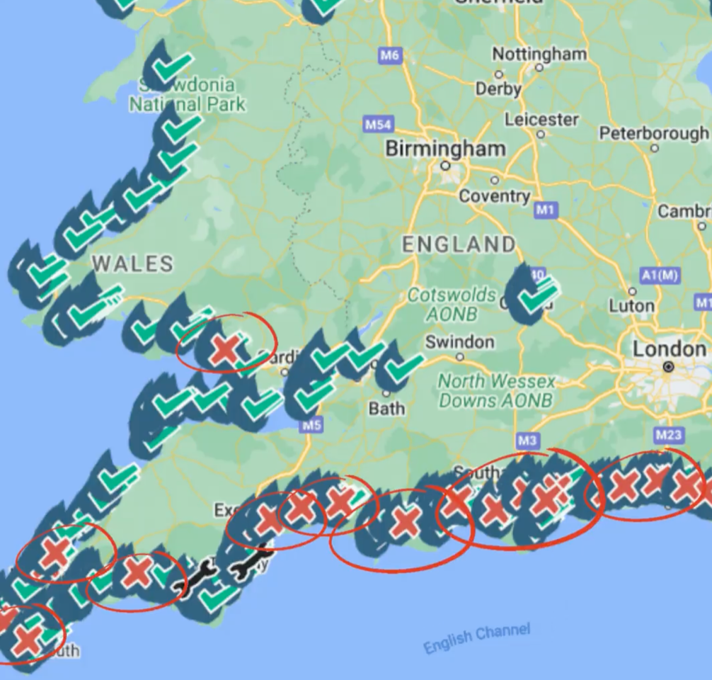 Map graphic: Surfers Against Sewage