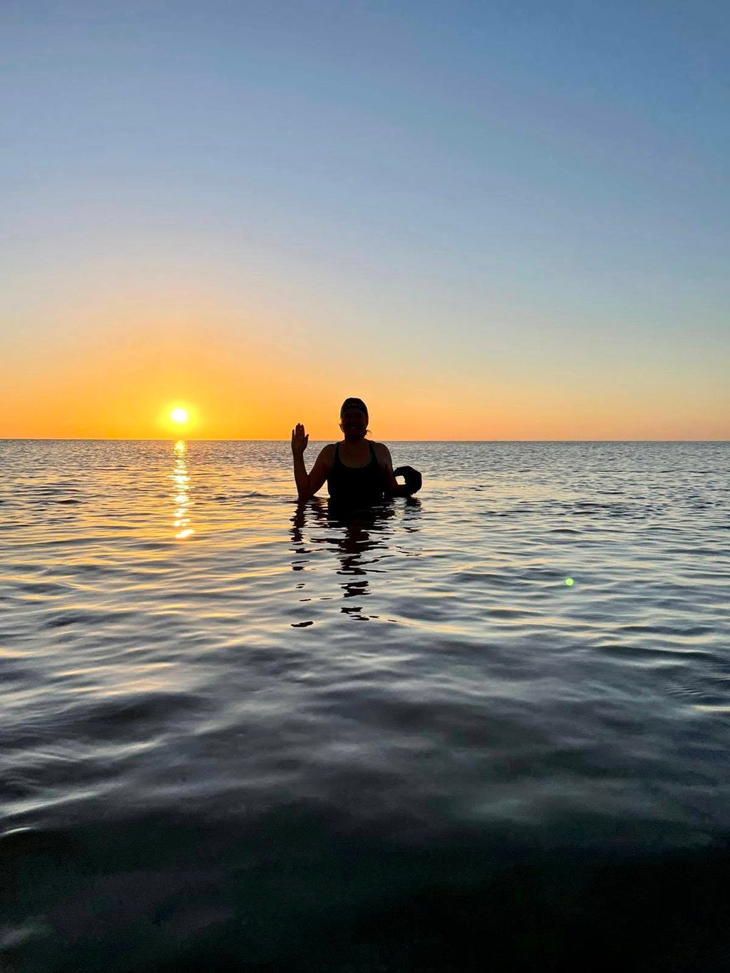 When I’m in the sea I feel fully of the world, held together in our floating lifting and falling dance, vitally present. The dissociation that stress and trauma like to delight in, the incongruence between self and world, dissolves and I know I am safely home and held in this so large and co-creative embrace that is awesome in its power, sometimes dangerous to be around, but never personal in its wildness, always deserving of attention and respect.