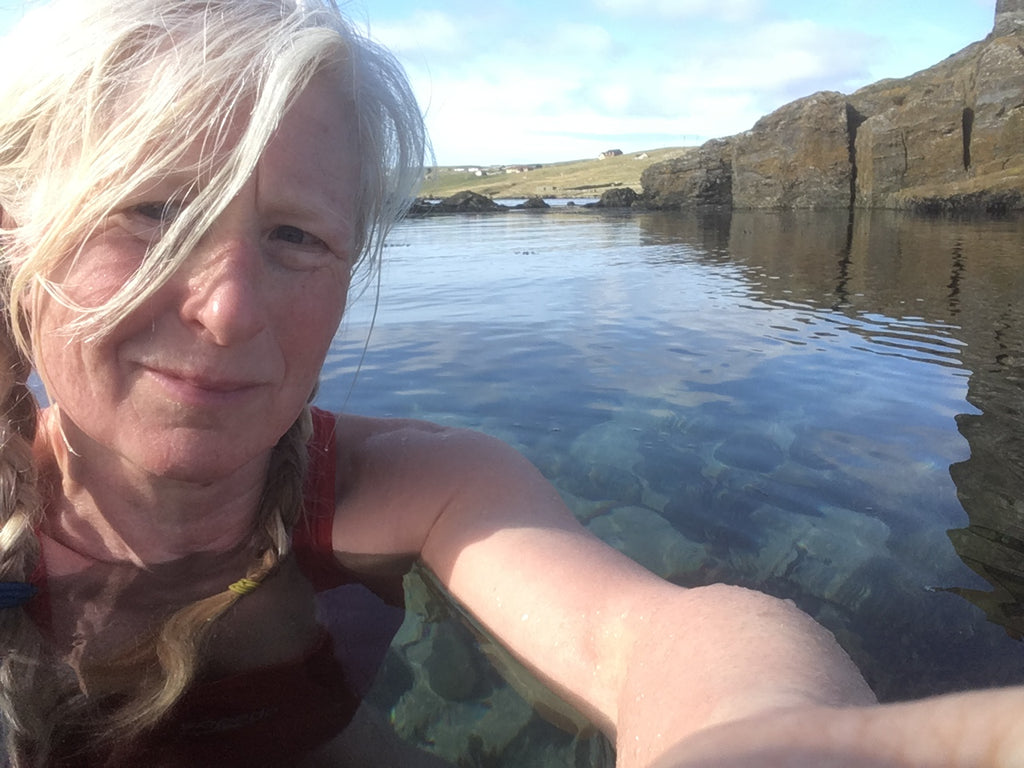I am a mum to four kids, in my 50s, living in Shetland. I discovered wild swimming a couple of years ago after a particularly traumatic relationship breakdown. I felt like my life had imploded and was getting panic attacks. A friend encouraged me to go coasteering, there was a place with a group led by an outdoor instructor. It wasn’t the best of weather (April in Shetland still feels like winter) and the cold made my poor broken heart hurt even more and every cold slap of the waves in my face reminded me of all the times I had wished he would just hit me. I found myself weeping uncontrollably but somehow knew this was something I would have to do again.